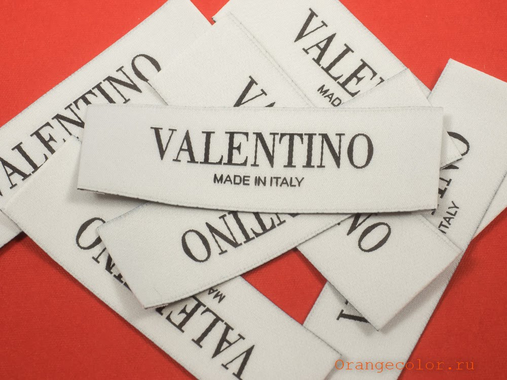 Пришивная этикетка с логотипом "Vаӏеntinо", полиэстер, цвет белый/черный, размеры 8,0 см х 2,5 см.