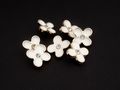 Металлическая пуговица в виде цветка четырёхлистника, с кристаллом посередине, цвет белый/золотой, размеры 1,8 см х 1,8 см.