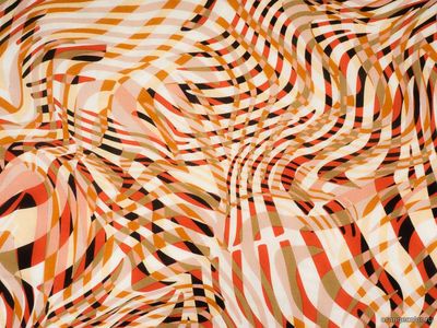 Плотный, пластичный, струящийся, плательный твил, фон молочнный, принт в тёплых тонах. Натуральная ткань средней плотности, подойдёт и для летнего вечера, и для тёплых осенних дней, имеет элегантный отлив при движении, идеальна для струящегося платья. Плотность 230 гр/пог м, вискоза 100%, ширина 140 см (на фото кромки слева и справа).