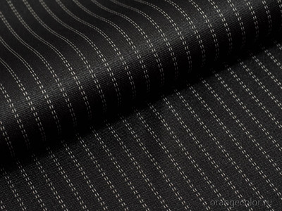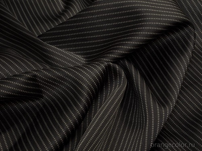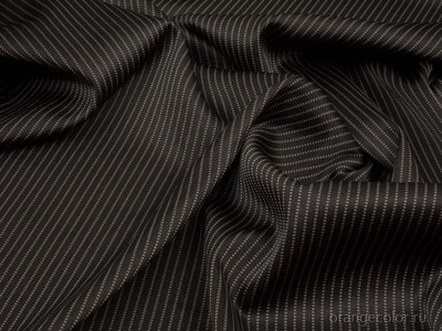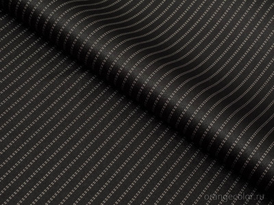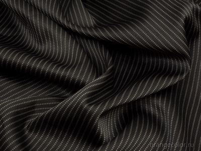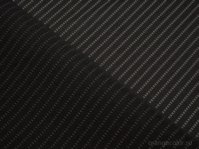 Плотный, пластичный, упругий, костюмно-плательный сатин с выработкой в полоску, цвет чёрный, блеск не выраженный, полоски вдоль полотна. Вискоза 20%, полиэстер 76%, эластан 4%, ширина 146 см (на фото кромки слева и справа).
