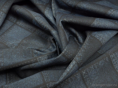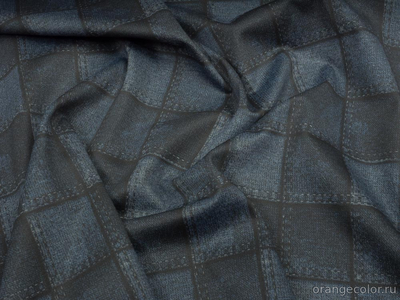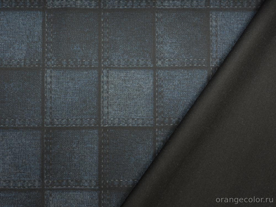Плотный, очень упругий, костюмно-плательный трикотаж. Лицевая сторона - потёртый джинс в "клеточку", изнанка чёрная. Хорош будет в спортивных костюмах, платьях по фигуре и других изделиях, требовательных к растяжению. Вискоза 30%, нейлон 65%, эластан 5%. Ширина 146 см (на фото кромки слева и справа).