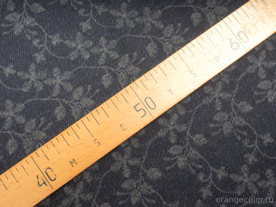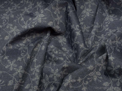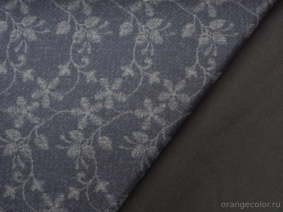 Плотный, очень упругий, костюмно-плательный трикотаж. Лицевая сторона - потёртый джинс с "вышивкой", изнанка чёрная. Хорош будет в спортивных костюмах, платьях по фигуре и других изделиях, требовательных к растяжению. Вискоза 30%, нейлон 65%, эластан 5%. Ширина 144 см (на фото кромки слева и справа).
