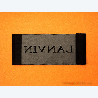 Пришивная этикетка с логотипом "Lаnvin", полиэстер, цвет черный/серый, размеры 6,7 см х 2,8 см.