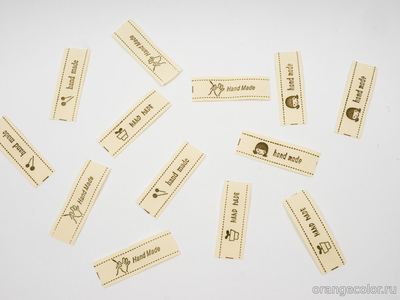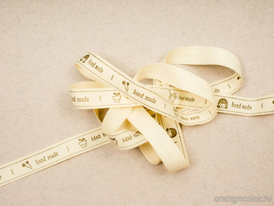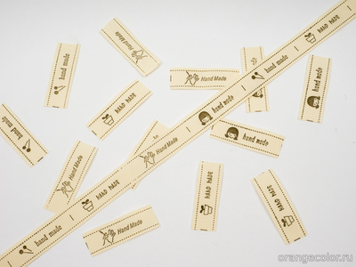Декоративная тесьма с этикетками Hand Made. Раппорт 38,5 см, это 8 этикеток 4-х видов. Вискоза, цвет экрю, ширина тесьмы 1,5 см. Режем метражом!