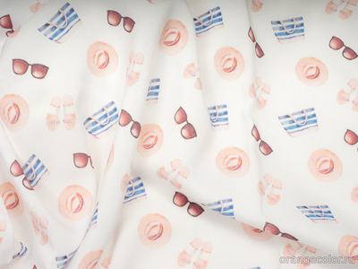 Тонкий, плотный, пластичный, шелковистый на ощупь штапель с необычным принтом. Все мысли об отпуске у моря. Фон молочный. Ткань просвечивает против света, для юбки понадобится подклад. Вискоза 100%. Ширина 138 см (на фото кромки слева и справа).