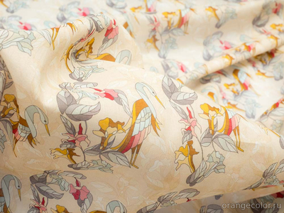 Тонкий, воздушный, шелковистый, блузочно-плательный батист. Ткань просвечивается, подойдёт как на самостоятельные изделия, так и в качестве деликатного, не утяжеляющего вещь, подклада. Фон цвета загара. Плотность 90 гр/ пог м. Хлопок 100%. Ширина 150 см (на фото кромки слева и справа).