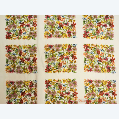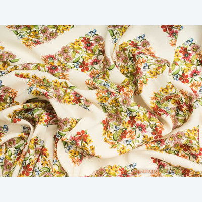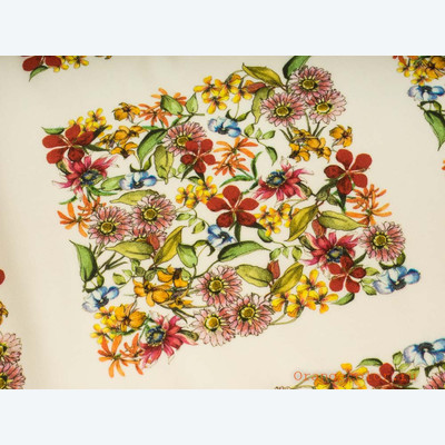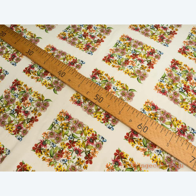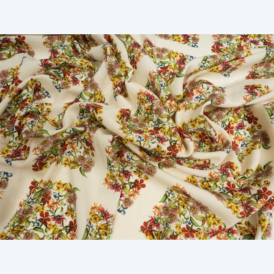Тонкий, плотный, пластичный, плательно-блузочный штапель. Фон молочный. Вискоза 100%. Ширина 142 см (на фото кромки слева и справа).