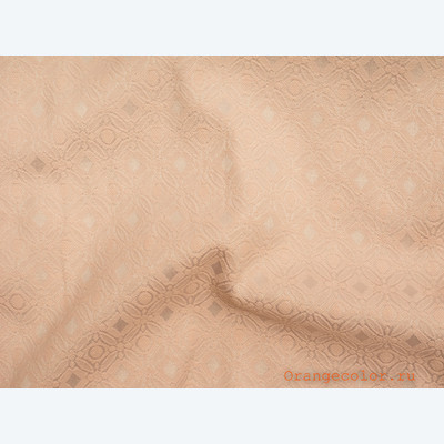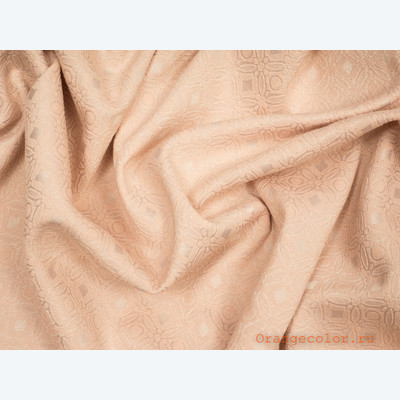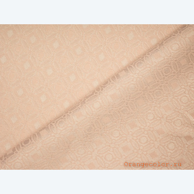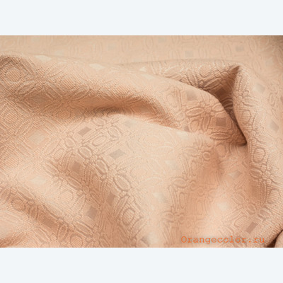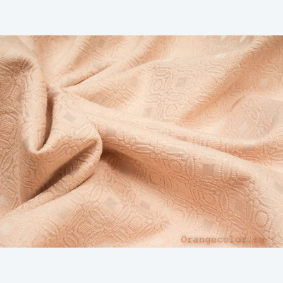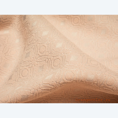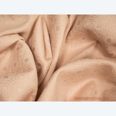 Плотный, пластичный, плательно-костюмный жаккард. Цвет пастельно-розовый, одна сторона матовая, вторая с блеском. Вискоза 60%, полиэстер 35%, эластан 5%. Ширина 136 см (на фото кромки слева и справа).