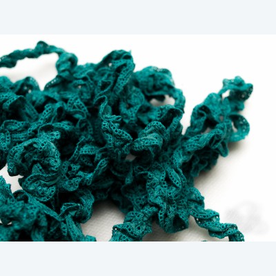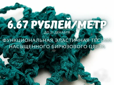 Изящная и функциональная эластичная тесьма насыщенного бирюзового цвета, идеальна для отделки и декорирования. Выполнена в стиле «шитьё» с характерным ажурным узором и фестончатым краем, имитирующим ручную работу. У тесьмы хлопковая фактура, приятная на ощупь, матовая, не вызывает раздражения.